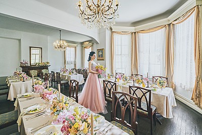 おしゃれな伝統的建造物の洋館を貸し切って、大切なゲストと過ごすプライベートな一日。陽光と鮮やかな緑に包まれる中でのガーデン挙式は花嫁の憧れ!ゲストからの祝福を存分に受けて幸せな思い出を作ろう!