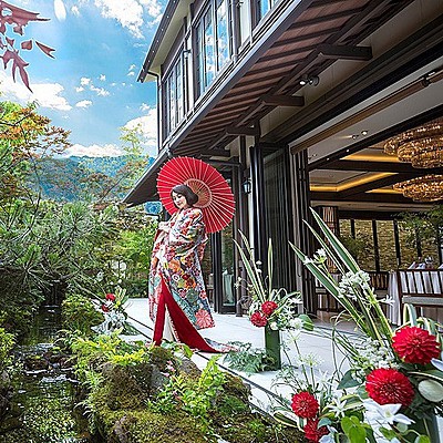 古都・京都の街並みに佇む趣溢れる邸宅でもてなす大人な上質ウェディングが叶う!おもてなしの要となる料理はシェフがおふたりの想いやこだわりをくみ取って創る、世界にひとつだけのオリジナルフルコース。景観・料理・サービス全てがゲストへのおもてなし。