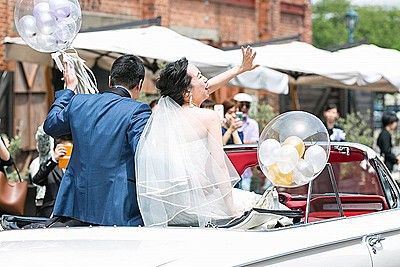 遮る物が何もない澄み渡る青空に、歴史を積み重ねた赤レンガが映え、ミュージアムのクラシックカーが往年のロンドンやニューヨークを彷彿させる雰囲気を醸し出す。