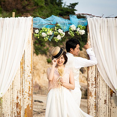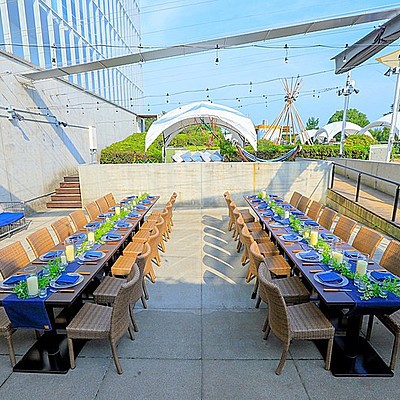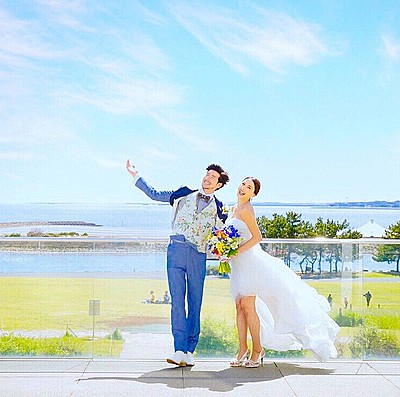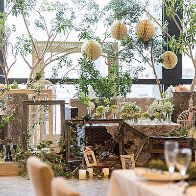 リゾート感溢れるオープンエアなテラスで、自由でわいわいと楽しいパーティーを。ふたりもゲストもリラックスした、特別感溢れるひとときを演出します。