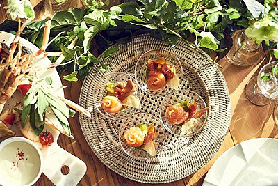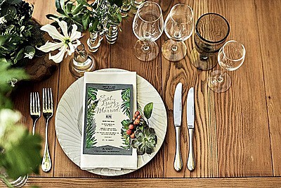 味だけでなく盛り付けなどにもこだわって空間デザインと一体になるような本格的なフレンチは五感で楽しめるコースとなっている。そこに2人らしさを合わせたコーディネートを組み合わせて正統派のクラシカルウエディングを叶えよう!