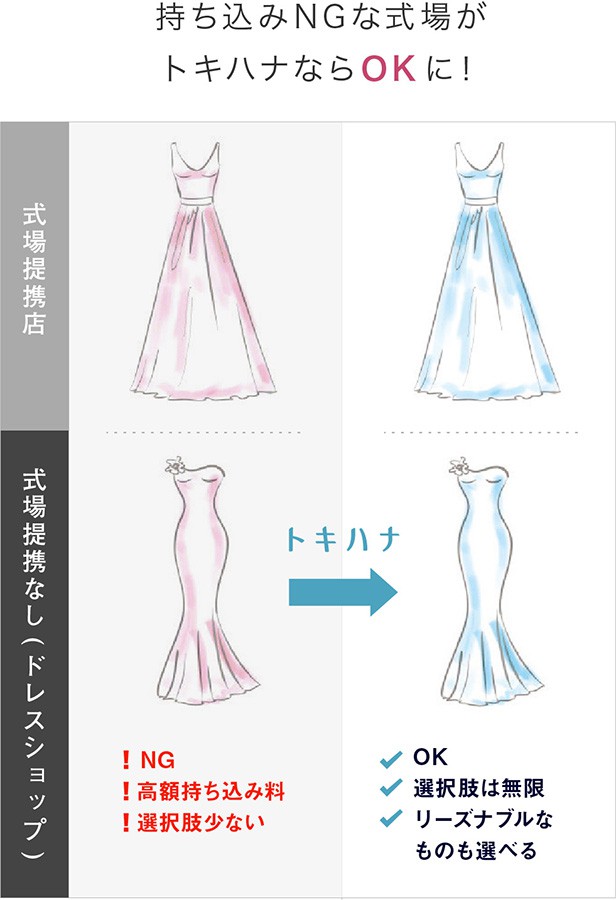 トキハナを使えば、本体価格のまま式場を通さず持ち込めるので、とってもオトクです。