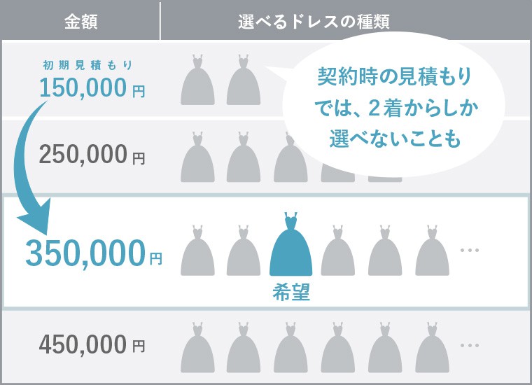 ■ 式場提携ショップのドレスの金額と選べる種類の関係②リアルな金額がわかって安心