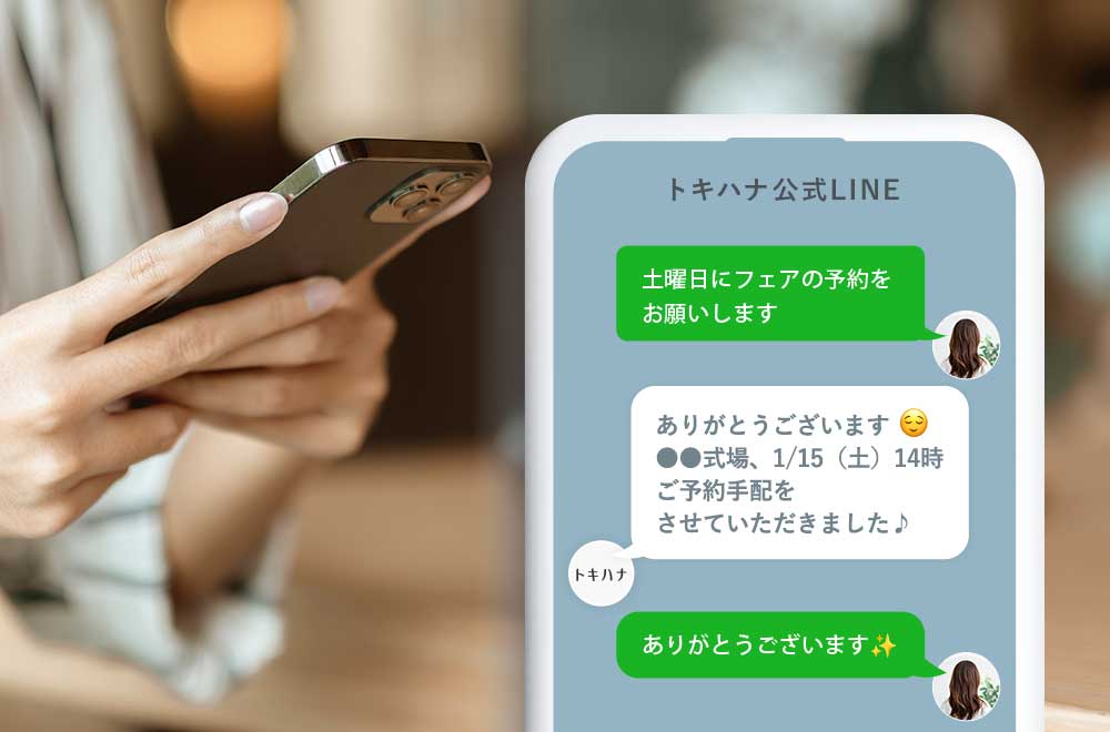 トキハナカウンセラーが、ビデオ通話にて式場探しなどのご相談を承ります。