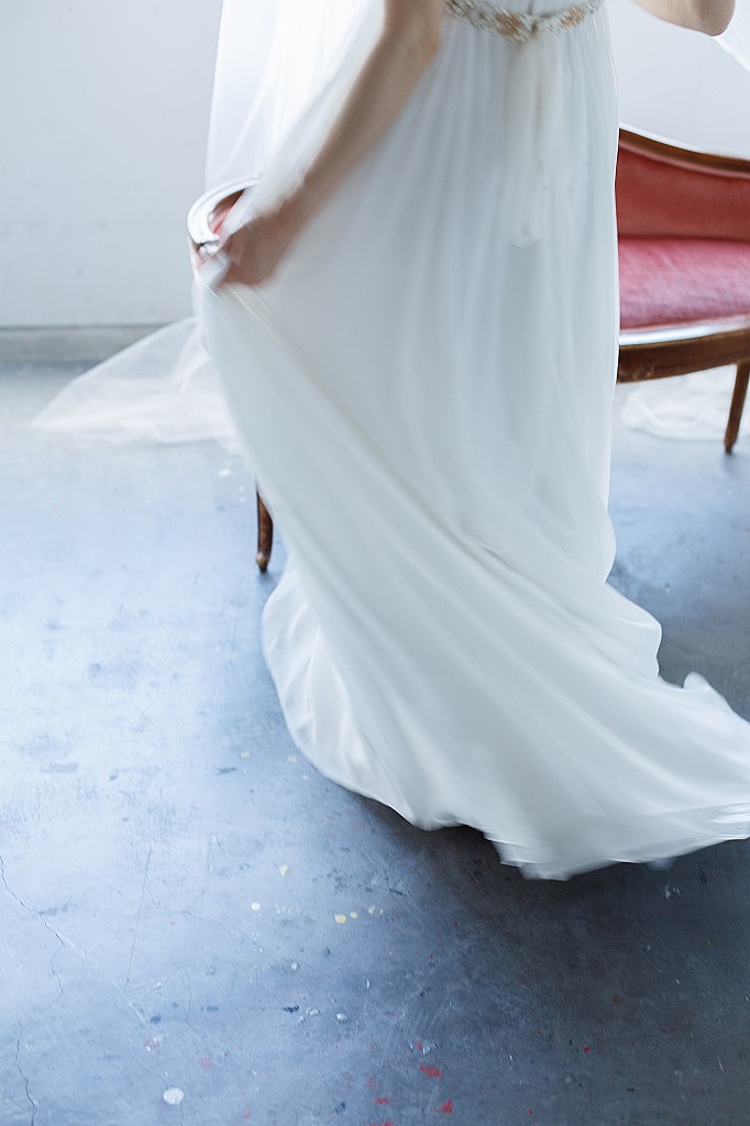 シフォンの生地で優しい印象のエンパイヤラインのドレス。