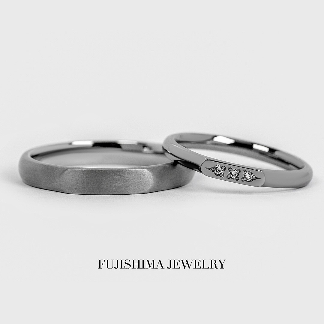 直線・曲線の美しさを落とし込んだ、凛としたデザイン。希少な黒いアレルギーフリー金属「タンタル」を使った耐久性の高いリングを、オーダーメイドでご提供いたします。