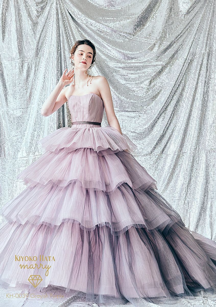 BOWドレス。大きなリボンをふわっと結んだデザインのオフショルダーが珍しい。細かいひらひらのランダムプリーツを、贅沢に4段、エアリーに重ねました。