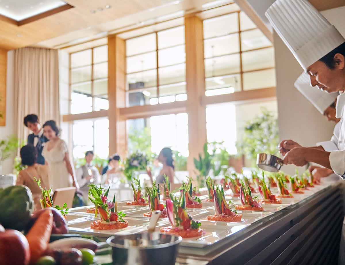 他会場も数件見学に行きましたが、結婚式を1番想定でき、自由度が高くゲストファーストな希望の式を一緒に作っていただけそうな安心感が決め手に。また、オープンキッチンの演出やゲストへの心配りもお任せできると感じました。