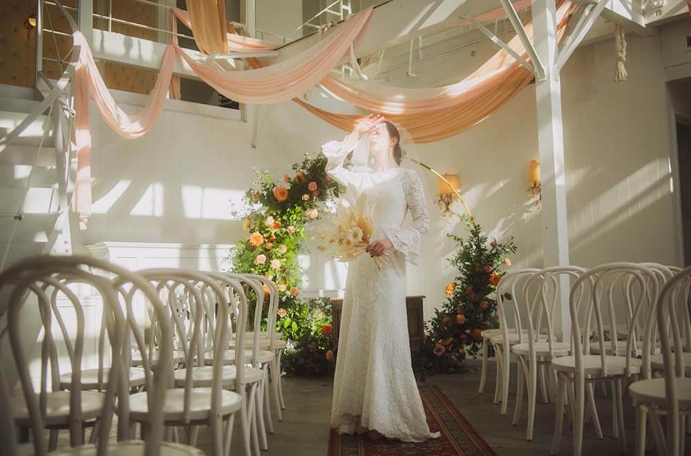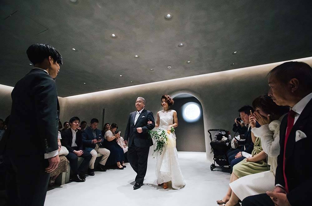 ゲストも特別な存在であることを体現できる、お祝いのための空間。形式的なプログラムや演出ありきの式に違和感をもつ方に人気の会場です。