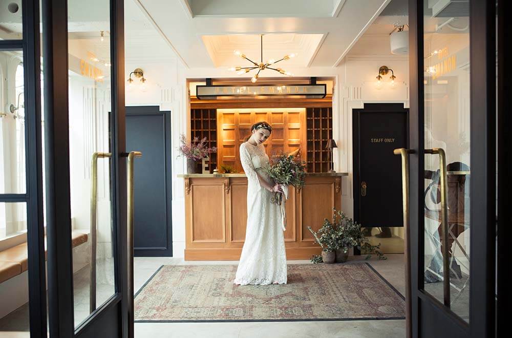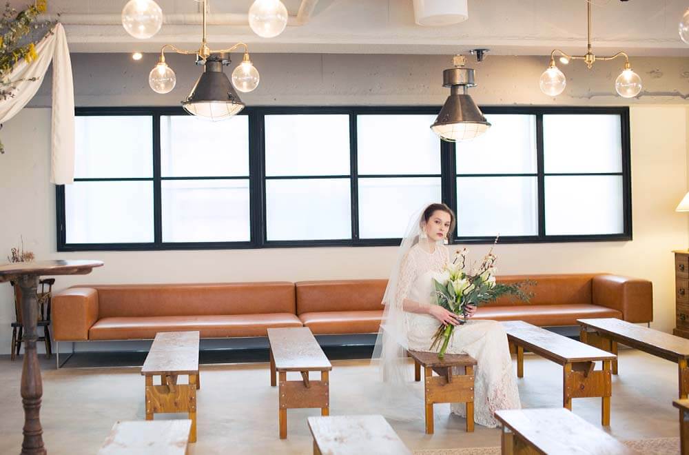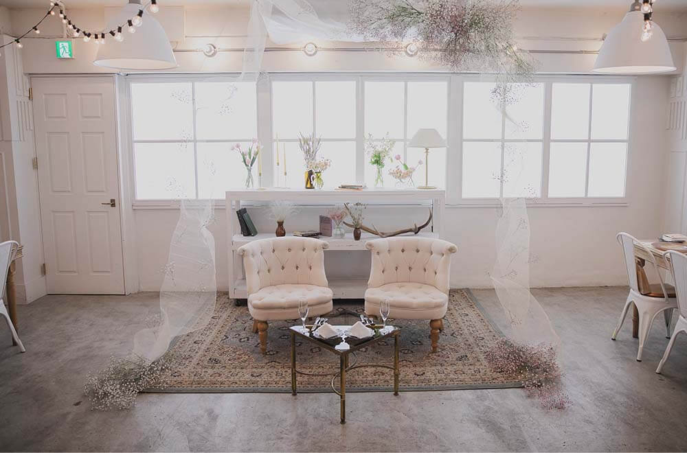 料理以外の持ち込みが自由にできる、柔軟性の高いフリースペース。ドレス・フォトグラファー・ヘアメイクまで、自分たちの思い通りに選べます。