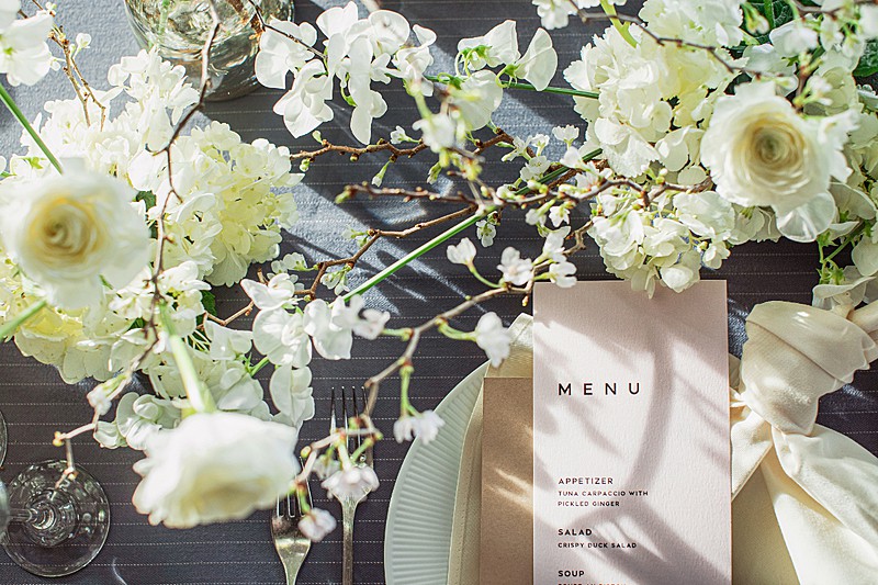 パーティ会場のテーブルコーディネートやレイアウトの一例をご紹介。結婚式直前のタイミングなら先輩カップルのセッティングが見られることも。アイデアを参考に自分たちらしいイメージを膨らませてみましょう。