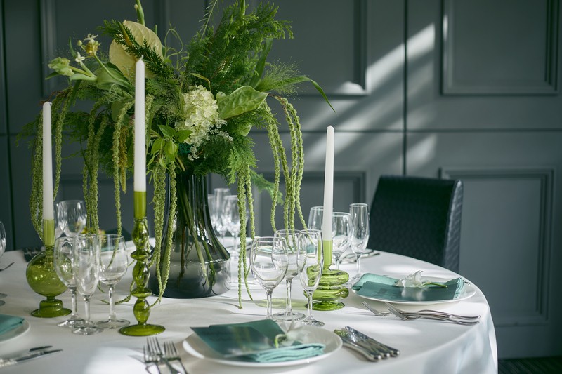 パーティ会場のテーブルコーディネートやレイアウトの一例をご紹介。結婚式直前のタイミングなら先輩カップルのセッティングが見られることも。アイデアを参考に自分たちらしいイメージを膨らませてみましょう。