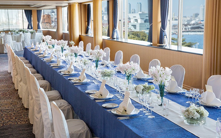 パーティ会場のテーブルコーディネートやレイアウトの一例をご紹介。結婚式直前のタイミングなら先輩カップルのセッティングが見られることも。アイデアを参考に自分たちらしいイメージを膨らませてみましょう。