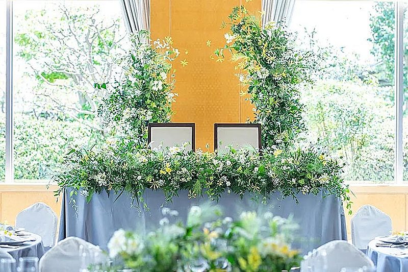 パーティ会場のテーブルコーディネートやレイアウトの一例をご紹介。結婚式直前のタイミングなら先輩カップルのセッティングが見られることも。アイデアを参考に自分たちらしいイメージを膨らませてみましょう。