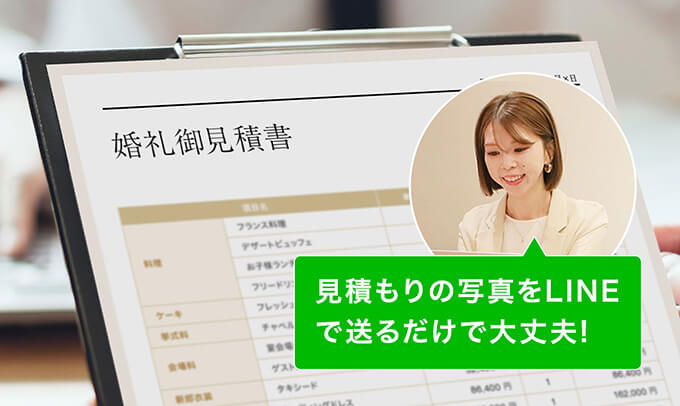 契約後に上がりやすい見積りも、挙式当日に近い最終金額がわかって安心です。