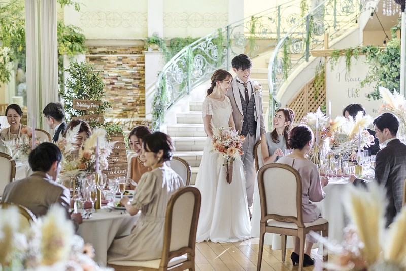 パーティ会場のテーブルコーディネートやレイアウトの一例をご紹介。結婚式直前のタイミングなら先輩カップルのセッティングが見られることも。アイデアを参考に自分たちらしいイメージを膨らませてみましょう。