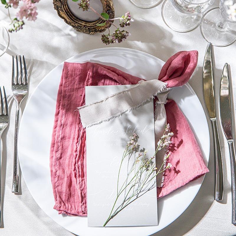 専属コーディネーターが手掛ける会場で今流行の装花やテーブル装飾などを確認。また、テーブルクロスやお花など具体的にイメージがある方はここで相談してみても。