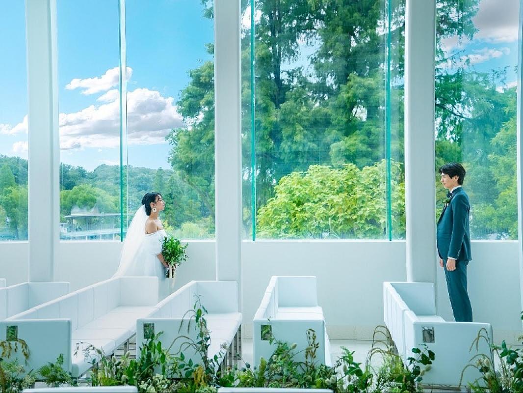 どの部屋にも大きな窓があり、東山の緑豊かな自然が鮮やかなコーディネートをサポート♪ どんなお色味にも合う会場でございますので おふたりのお好きなオリジナリティある色合いのコーディネートもぴったりの会場