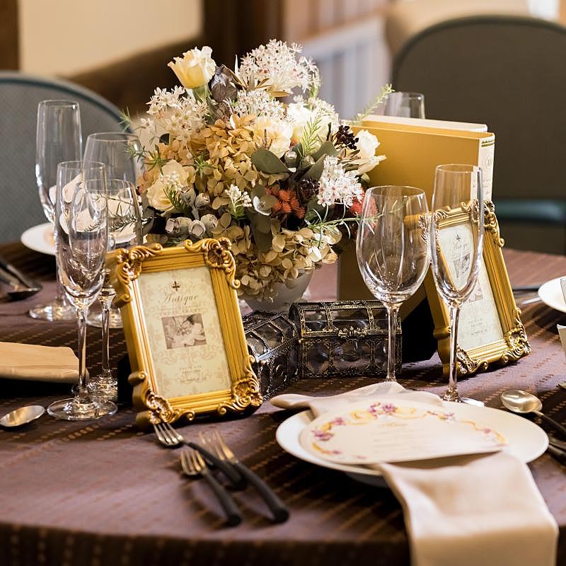 【おふたりらしいコーディネートを見つけよう】テーブル装花やクロス、ペーパー類等、おふたりらしさを表現できるアイテムを見つけて。こだわり派もおまかせ派も安心♪
