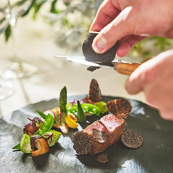 【華やかな披露宴を彩る料理体験】オープンキッチンから届く出来立ての一皿を、シェフのライブ感と共に堪能。国産牛フィレやオマール海老など贅沢食材で、五感を刺激する美食のひとときを体験できます。