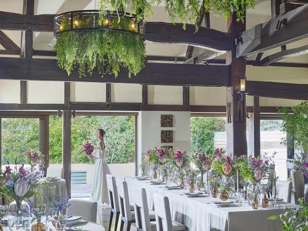 【天井が高く、ゆったりとした時間が流れるパーティ会場】デザイン性と居心地の良さを追求したシンプル&モダン空間で、おふたりに最適な会場コーディネートを提案♪