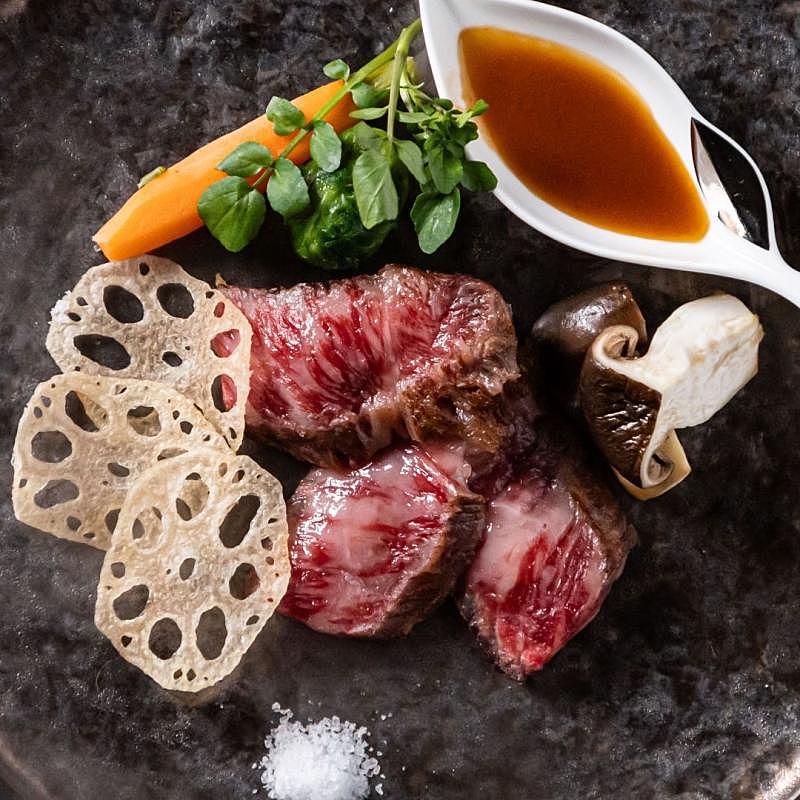 《実際の婚礼料理を体験できる!》人気の和洋折衷3コースの中から厳選した品を堪能できるハーフコース試食付き★和牛フィレ肉のステーキなどゲスト目線でお食事をお楽しみください。