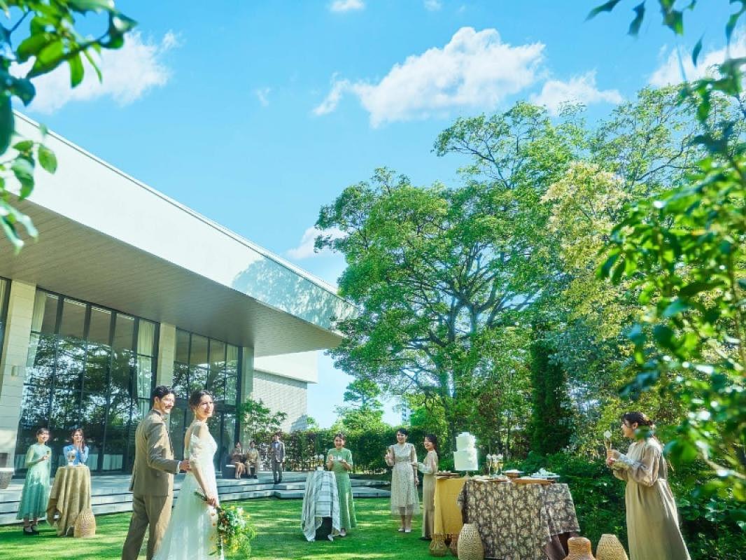 【大人数から少人数まで対応可能】和洋に対応!自然溢れるナチュラルな雰囲気の会場だからこそ、おふたりのコーディネートのイメージにぴったり!大自然の緑の中で叶える、テラス付き少人数用のスペースもご用意◎