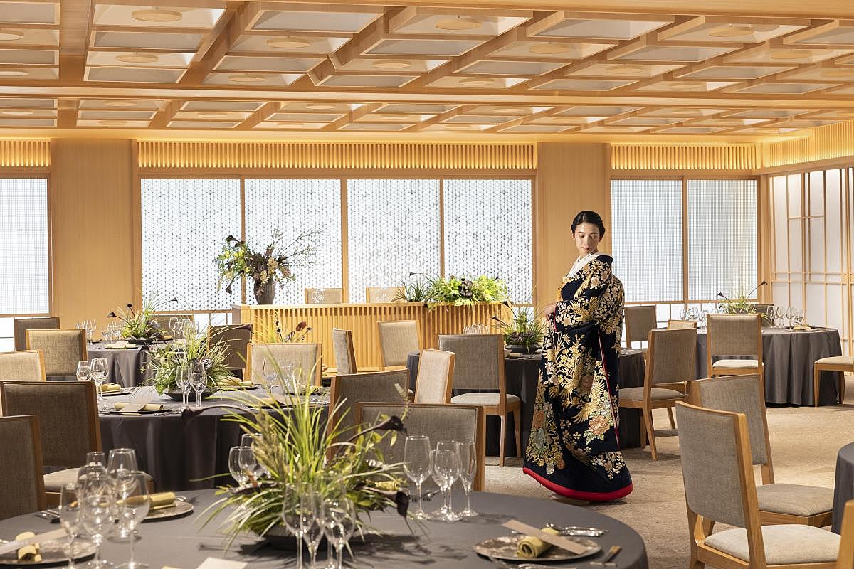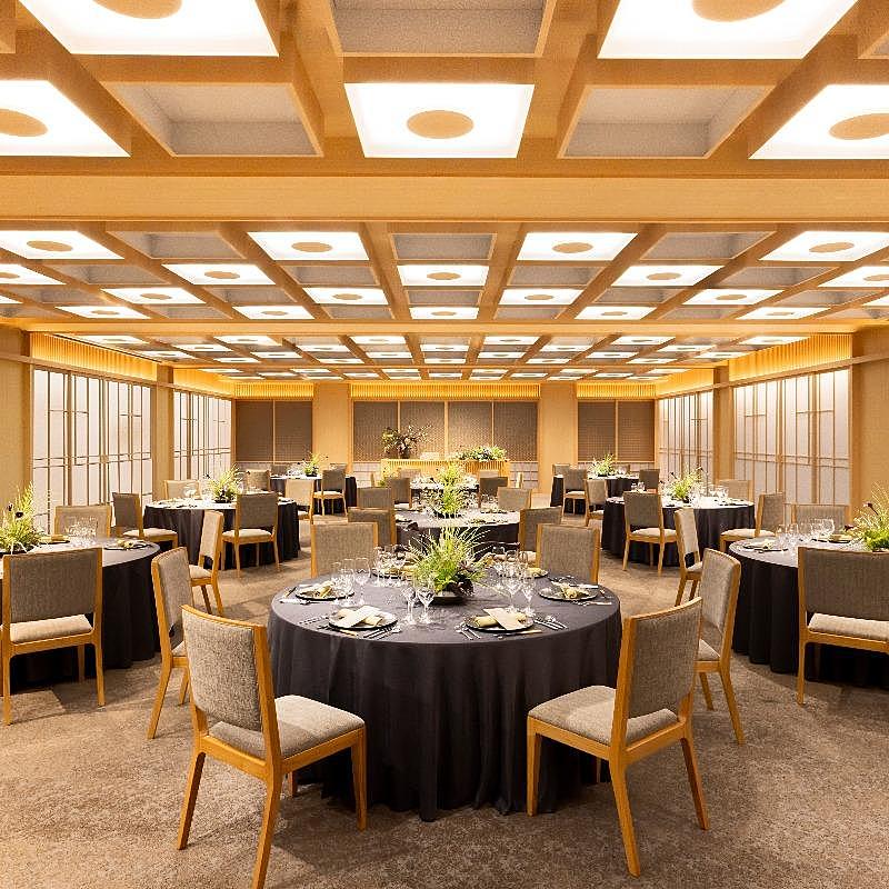 【2名~120名まで可能な和モダン会場】「1フロア1組貸切」で贅沢にゲストをおもてなし。最上階の眺望とオープンキッチンを完備し出来立ての料理をご提供。入場体験や映像演出体験でよりイメージが膨らみます。