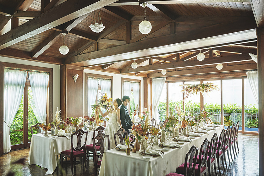 白を基調とした上質感が漂う空間が広がる。屋上テラスでのバルーンリリースも人気。美味しいお料理を囲みながら過ごす時間は、おもてなしが伝わるアットホームなパーティ。家族会食や少人数ウエディングも対応可能な個室のご用意もございます。