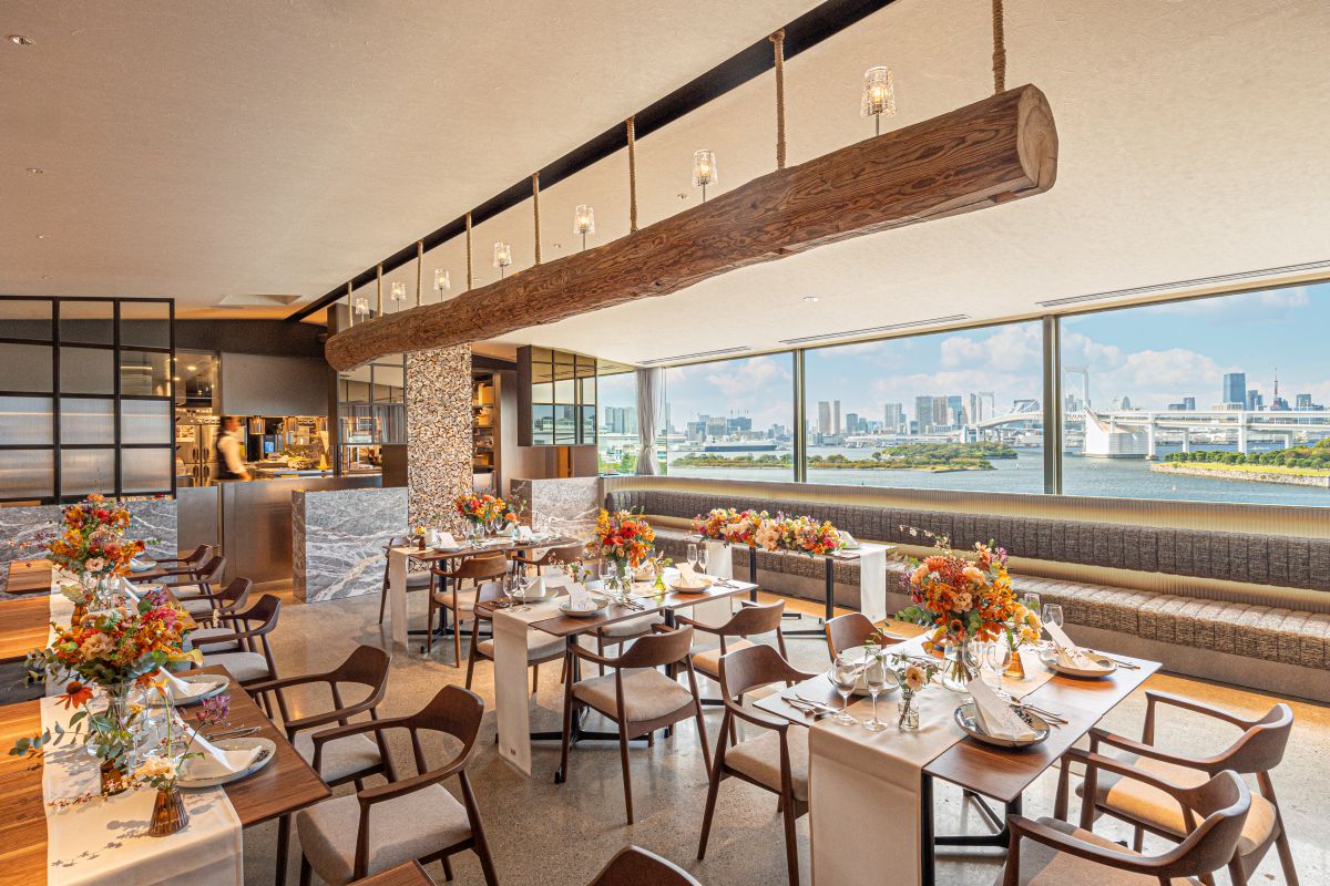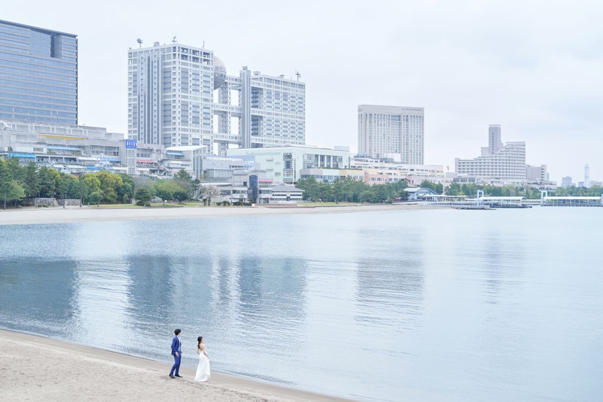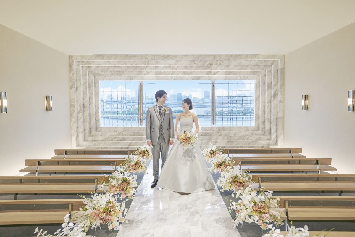 自然光を感じる光と海の水面が織りなすチャペルです。 時間の流れで変化する景色、夜には東京の夜景を背にナイトウェディングが叶います。 様々な世界観を楽しむことができるフォト専用のメゾンスタジオも併設。