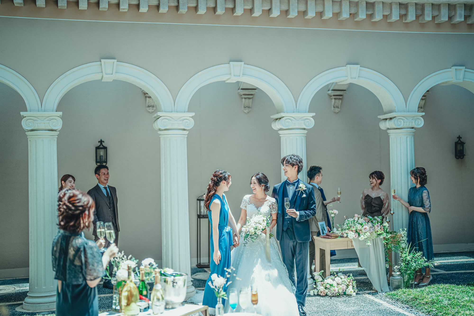 石造りの回廊を抜けると、ヨーロッパの街角のような非日常空間が広がります。 自然溢れる貸切ガーデンでアットホームなガーデンパーティもおすすめ。