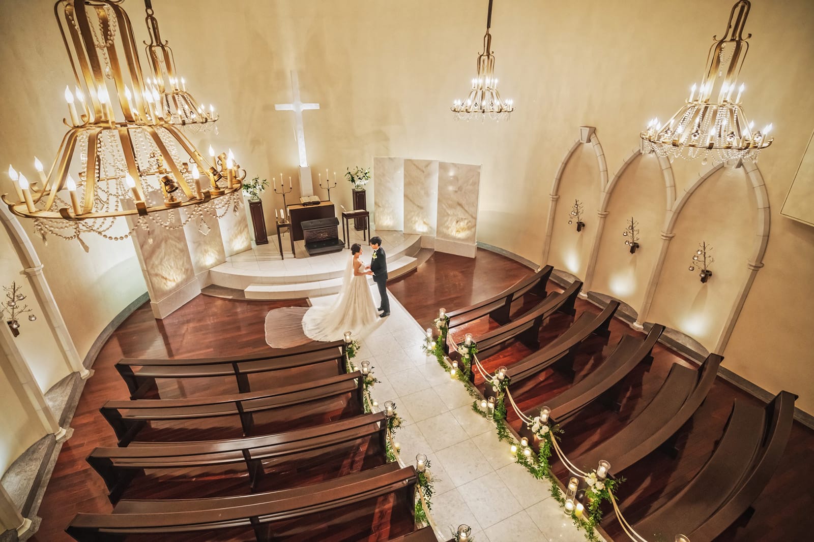 光のぬくもりが描き出す神秘的空間はお二人が立つことによってその美しさを完成させます。