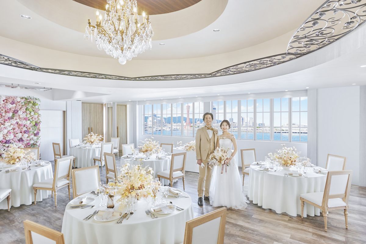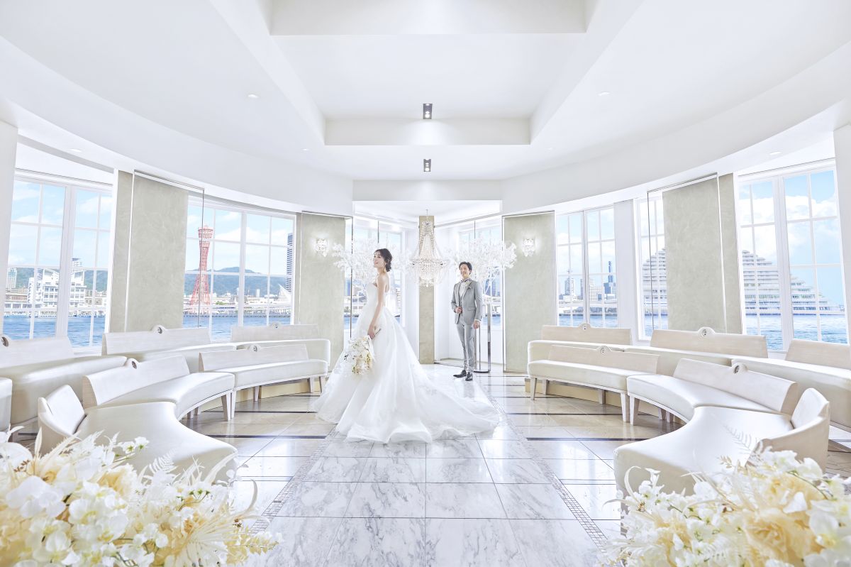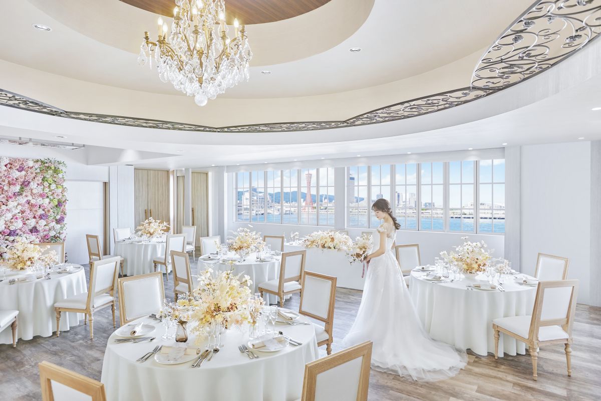 自然光が差し込む窓から神戸のロケーションを望みます。モザイク全体がライトアップされロマンティックな雰囲気になるナイトパーティーも魅力です。