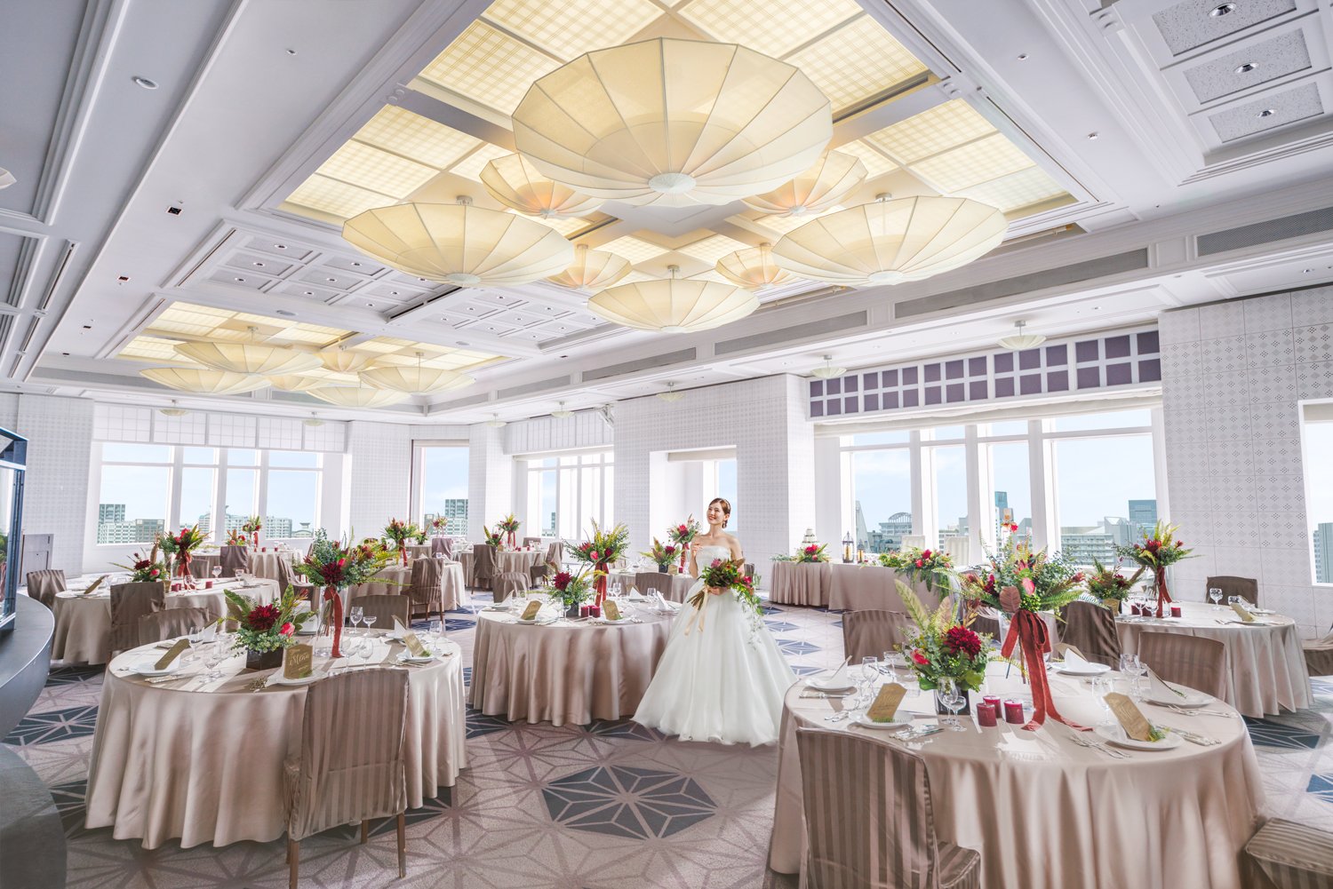 ふたりらしいパーティが叶うように! 挙式会場は、ステンドグラスが美しいチャペルと、ガラス張りの天窓と檜造りの厳かな神殿を用意。パーティ会場は高層階の会場や大画面スクリーンの会場など選べる披露宴会場が!それぞれの会場が細やかな部分までこだわり抜かれた空間