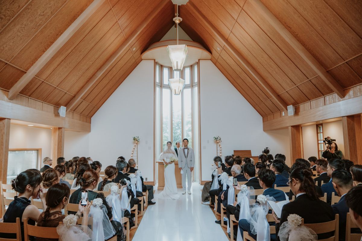 緑に囲まれた木の温もりあふれるチャペルで感動挙式