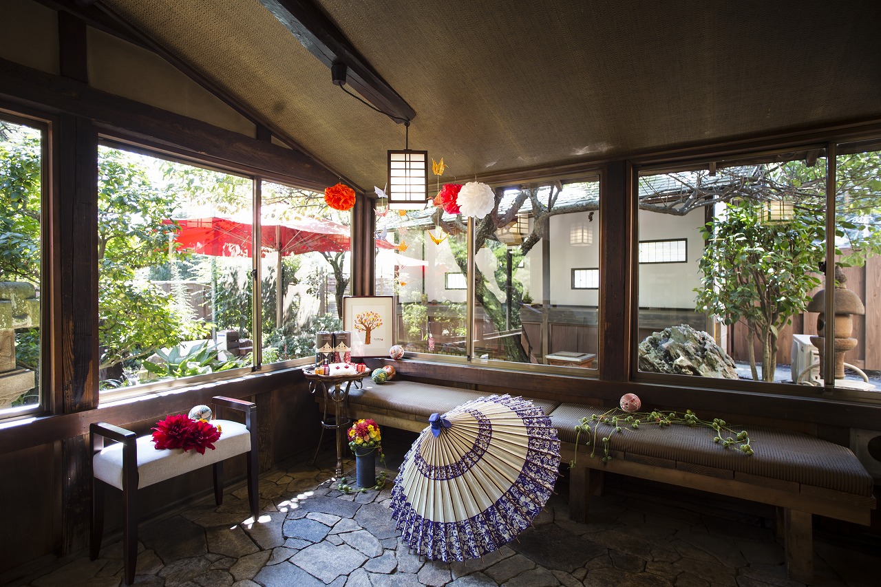 和装にもマッチする日本庭園が魅力。築100年以上の本物の古民家で1ヶ月2組限定の少人数ウェディングを。オリジナル料理にも対応。