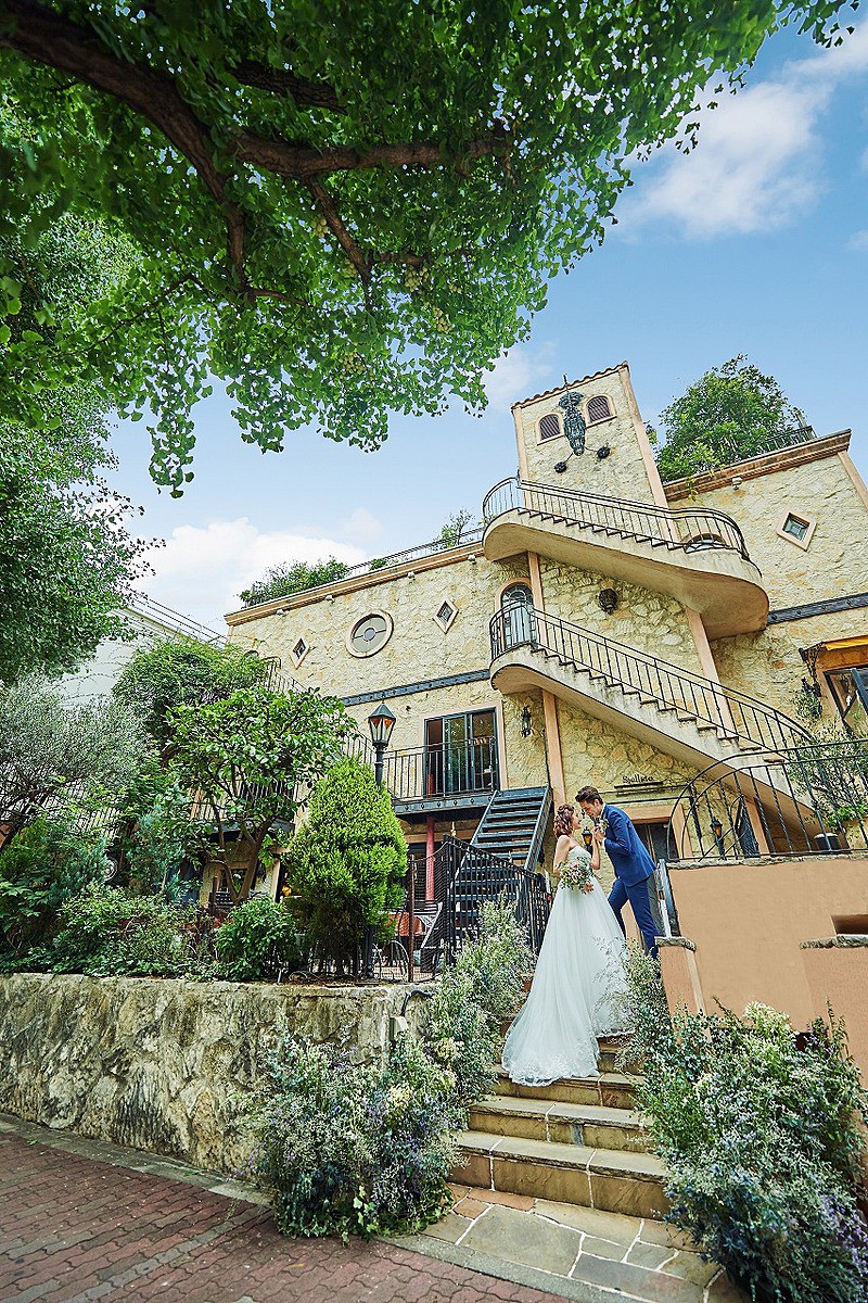 かわいらしくもしっかりと上品さを残した、クラシカルなお城のような外観が目印★レストランでもゲストハウスのように1軒家を贅沢に使ってのウェディングパーティーが叶います♪