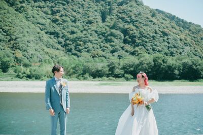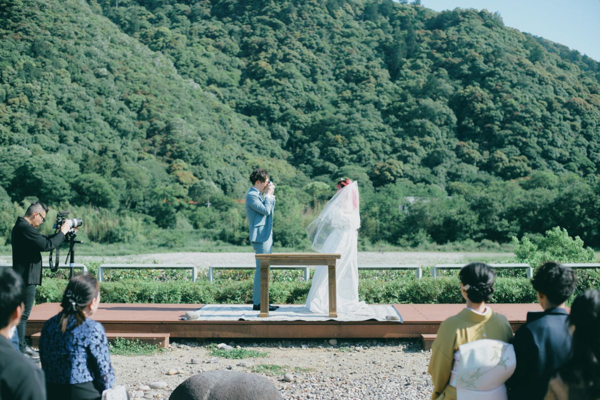 長良川のほとりで行う屋外挙式は、風や水の音を感じながら誓える開放的なスタイル。形式張った空間ではなく自然の中だからこそ、誓いの言葉も表情も、より素直にあらわれます。