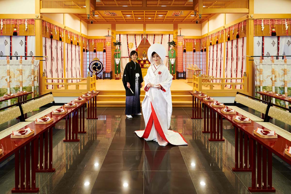 5500坪の緑ゆたかな迎賓館。中央に位置する白亜のチャペルとイメージのことなる3つの邸宅風の披露宴会場、和庭園を有する出雲大社御神像「出雲神殿」などふたりの理想のウエディングが叶います。