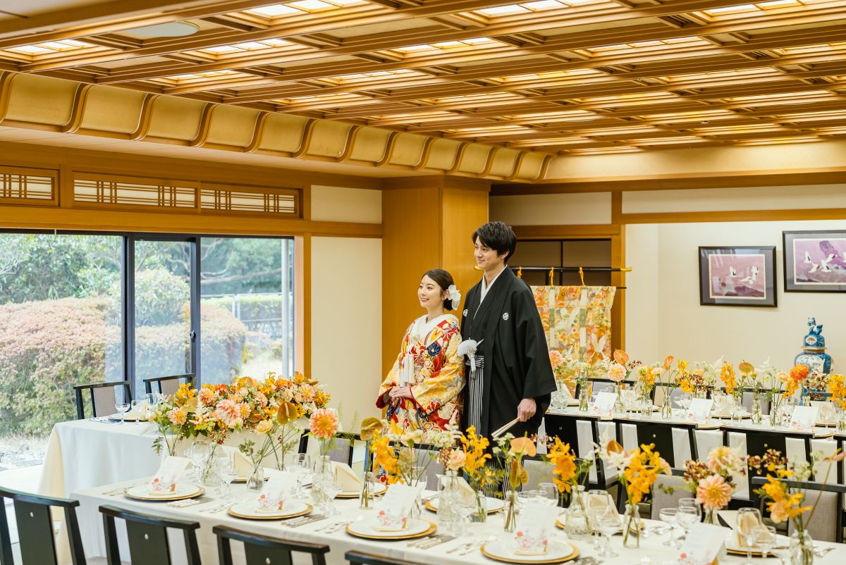 館内は落ち着いた色調でまとめられ、穏やかなひとときを演出します。四季折々の食材を使ったお料理を楽しめます。お式前後のご宿泊もできますので、ゆったりとお過ごしいただけます。