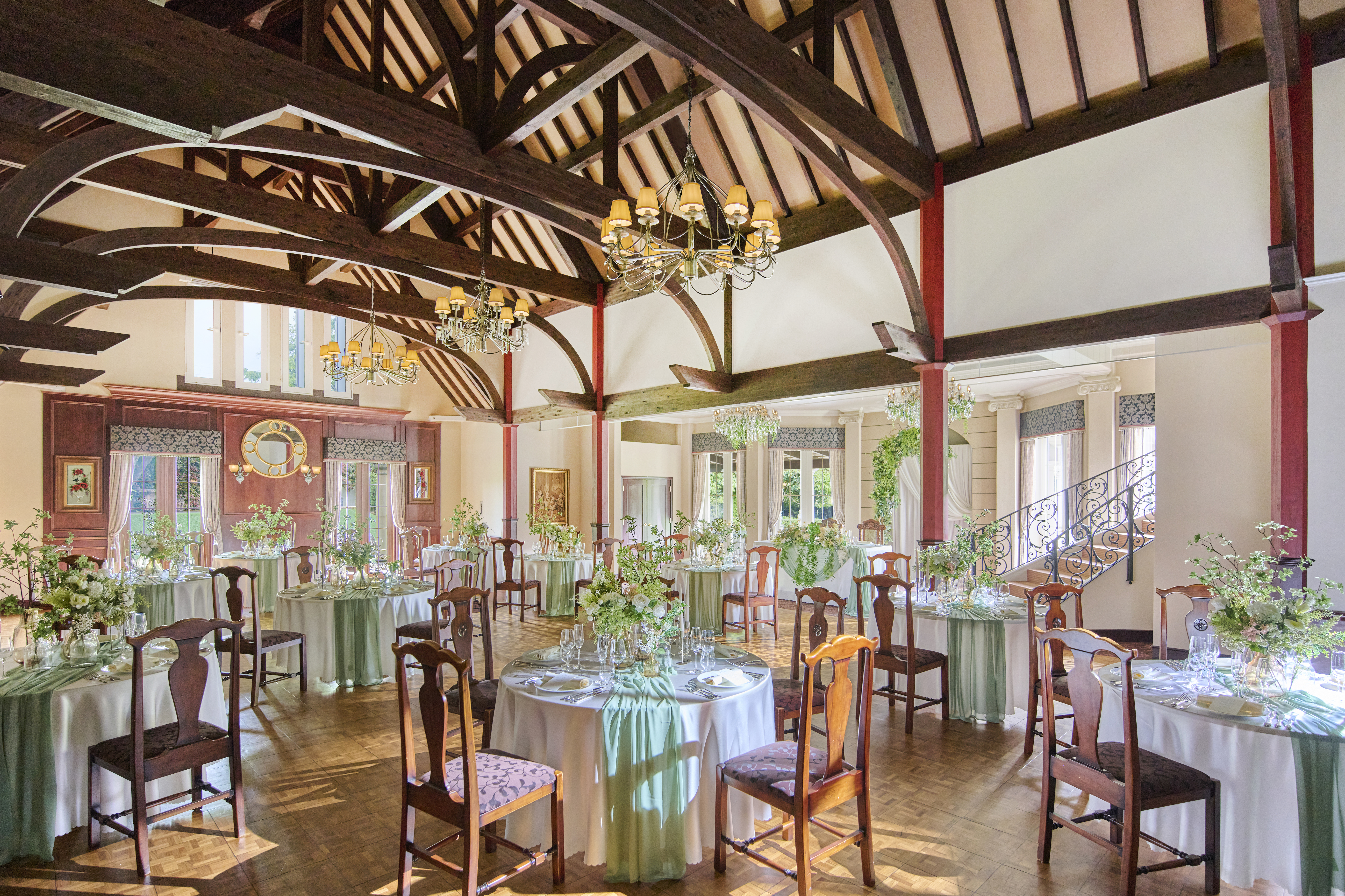 美しいイングリッシュガーデンを望める広々としたバンケット