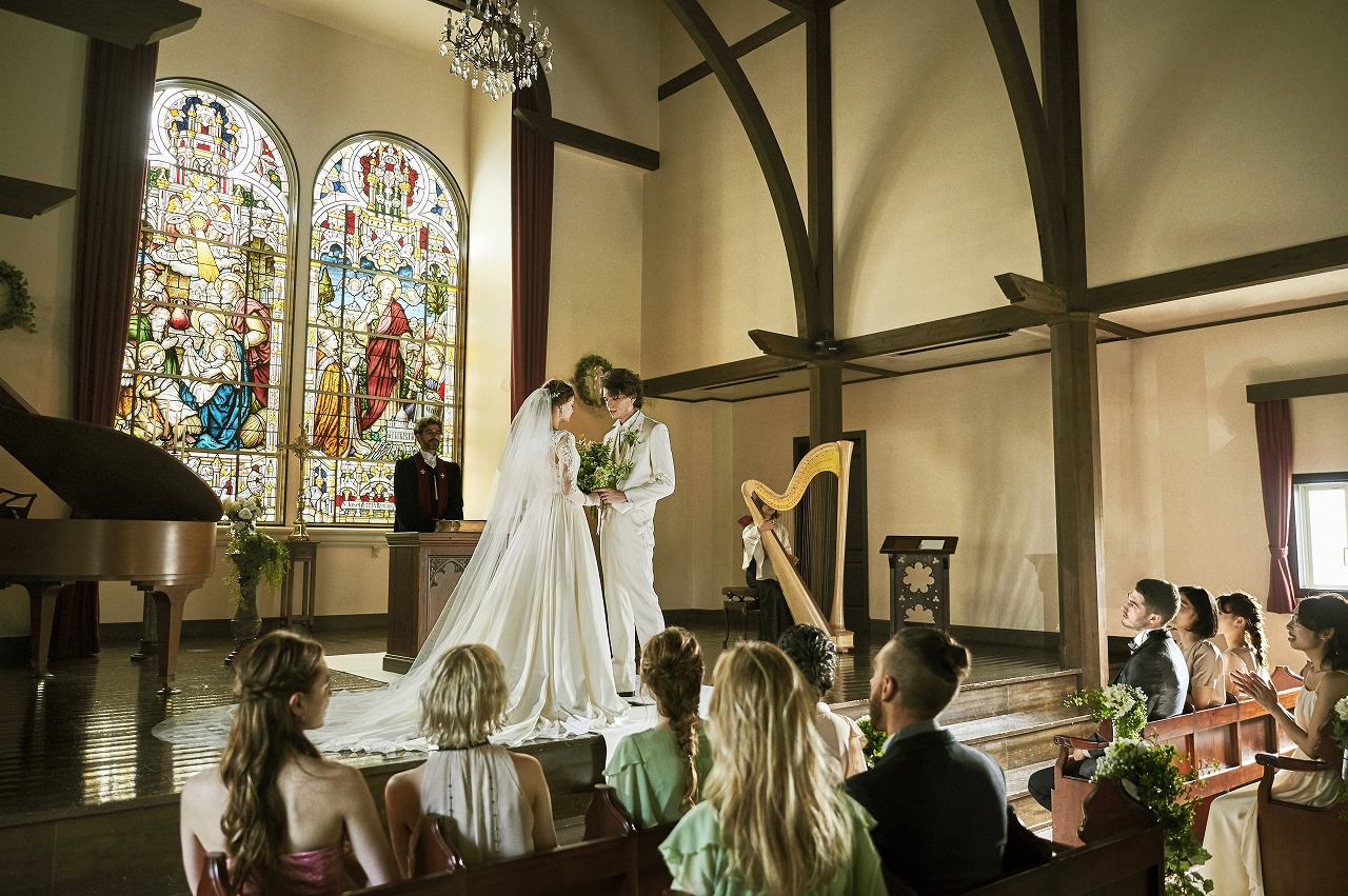 自然光と木の梁が温かな大聖堂独立型チャペルでおふたりの愛を誓う