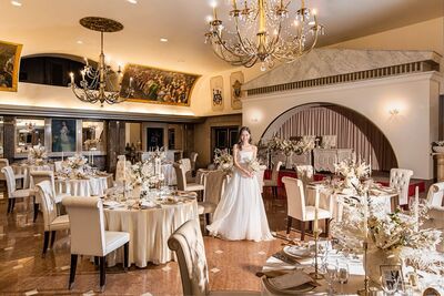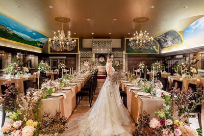 1829年建築の英国古城を移築した国内唯一無二のロケーション。10万平米の広大な敷地に、18世紀のステンドグラスが残る教会やアンティーク薫る会場が点在。ペット参列も可能で、本物志向の自由な結婚式が叶います。