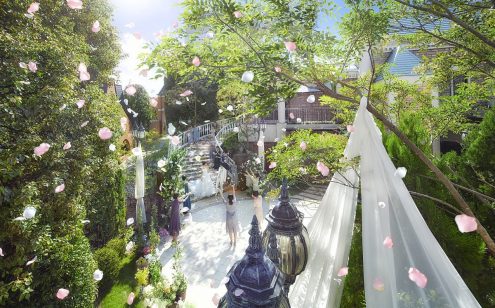 独立型チャペルから続くらせん階段でのフラワーシャワーや、ガーデンセレモニー、ゴンドラ入場など、多彩な演出が魅力。38年間愛され続けてきた、ウエディングのために設計された特別な空間で、おふたりらしい一日が叶います。