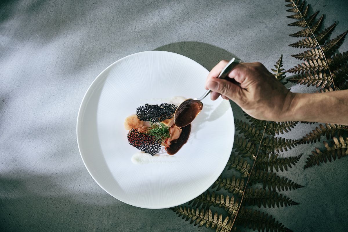 濃厚なフォアグラのブリュレ ひしほ味噌のクランブルと小粋な忍ばせ