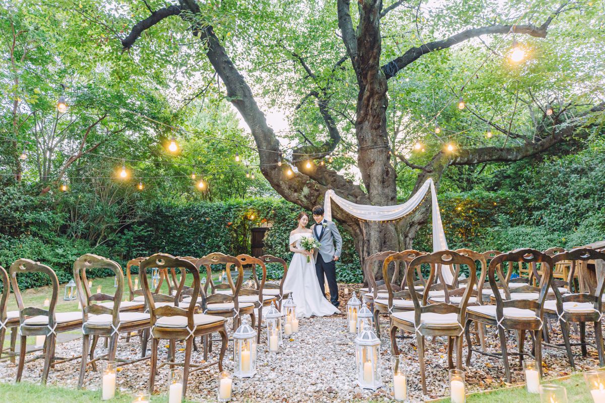 人々の人生に寄り添い続けた桜や椎の大樹に見守られるウエディング