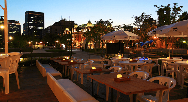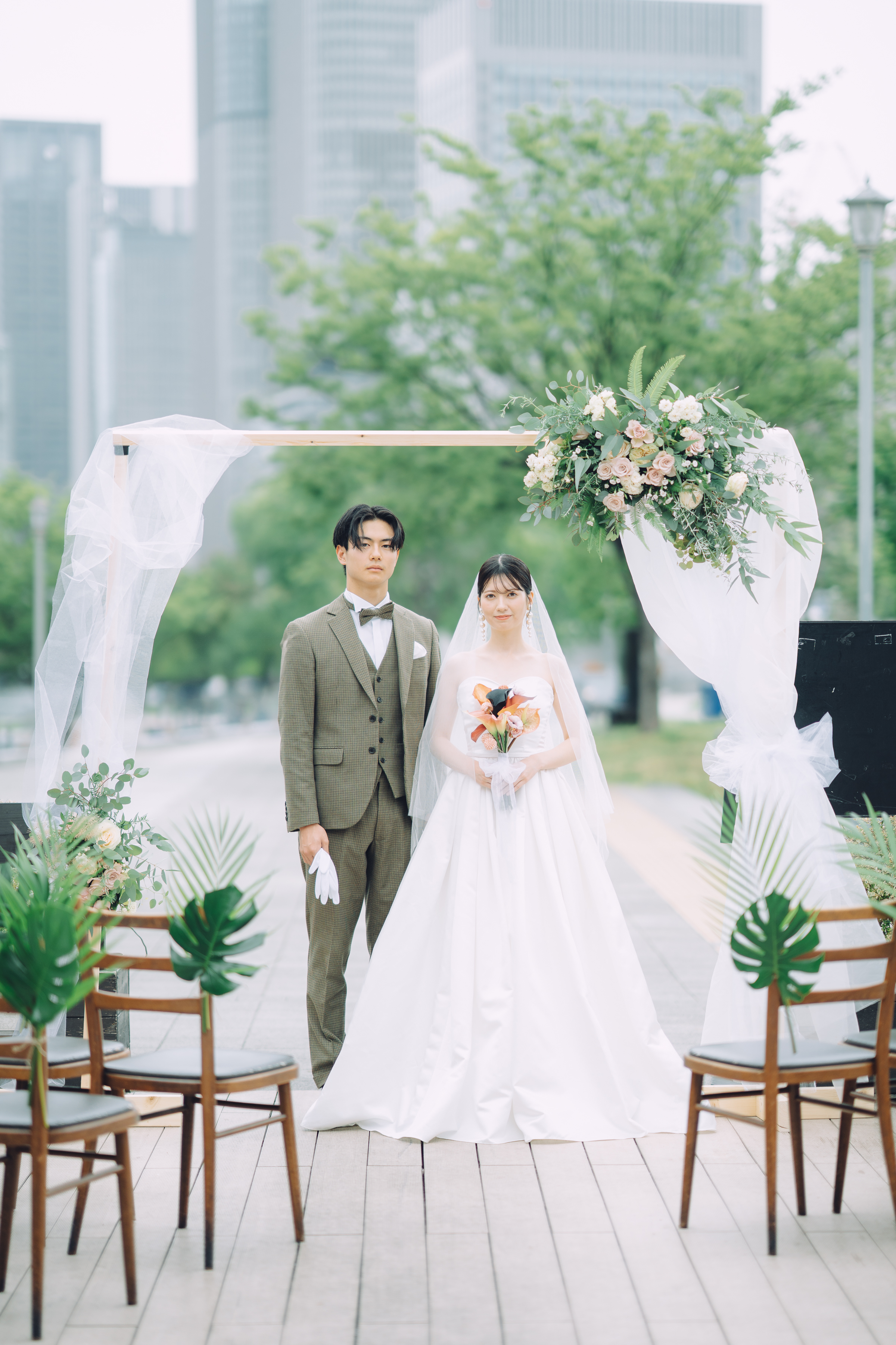 中之島リバーサイドの一軒家レストラン。緑と光が包む開放的な空間で、持ち込み自由の自由度満点ウエディング。ガーデンテラスで叶えるBBQスタイルも人気。