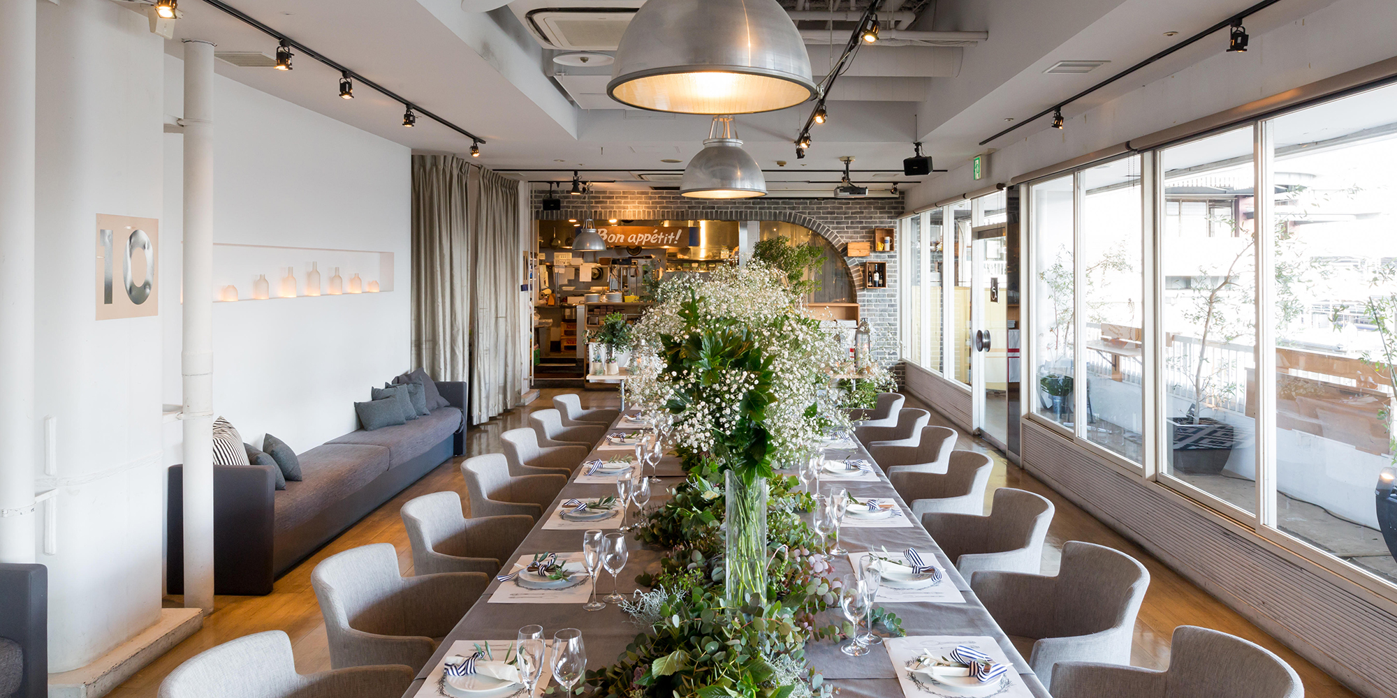 天王寺駅直結の好アクセス。大きな窓から自然光が差し込む開放的な空間で、ナチュラルで心地よいレストランウエディング。無農薬野菜を使ったこだわりの料理も魅力です。