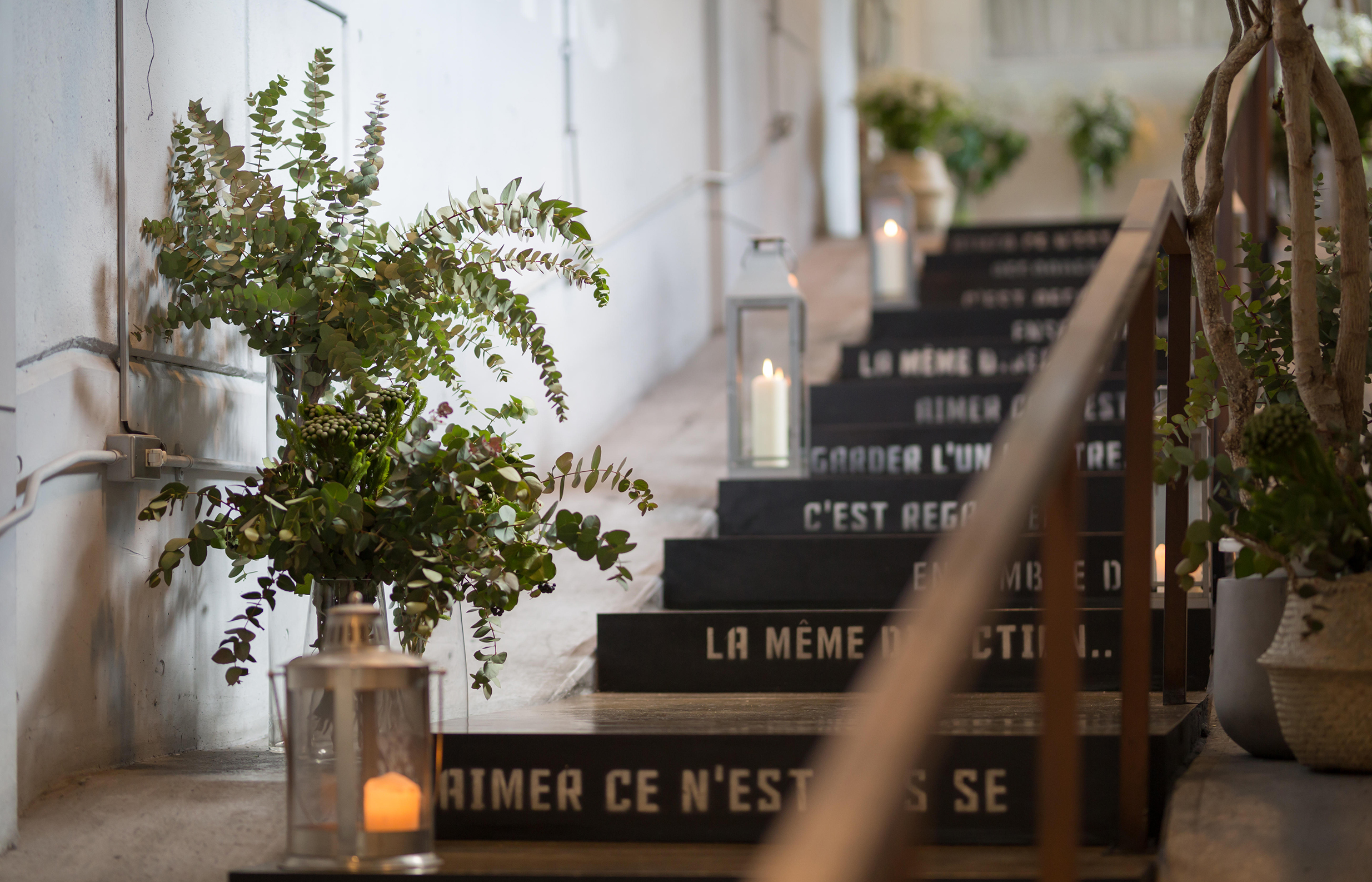 思い出のお写真を並べて、ゲストを一歩一歩楽しませながら迎え入れるような、心温まるオリジナルの演出もできます。ご結婚式後には新郎新婦様だけでなく、ゲストの方も日常使いのお店としてご愛顧いただけることも多いモノクロームの魅力をぜひお楽しみください。