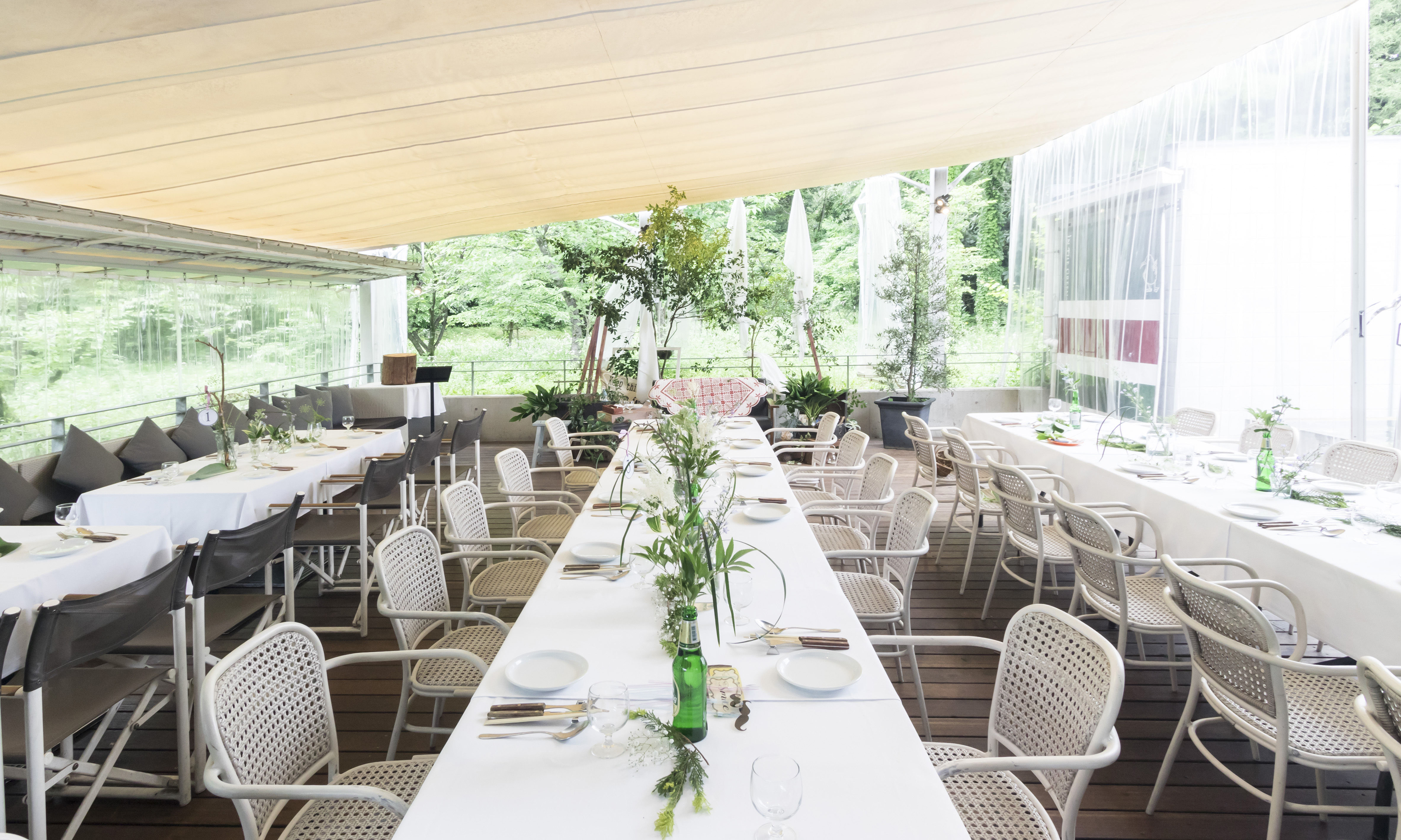隣接する植物園の壮大なグリーンを借景に、ナチュラルでカジュアルなパーティが叶います。